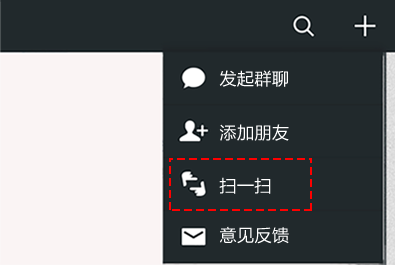 栏,选择“扫一扫”功能,点击后进行扫码操作。